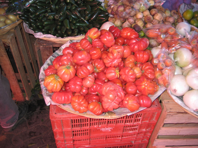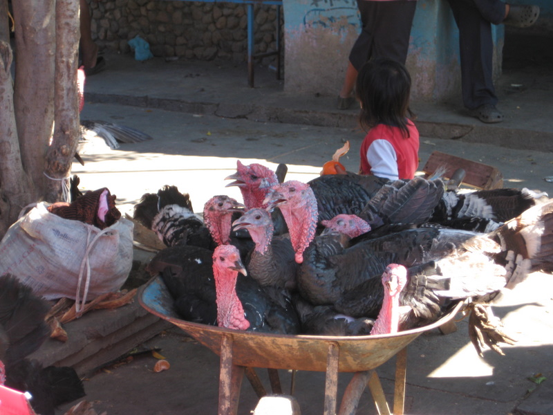 These interesting tomatoes and the turkeys below were in the market in Zaachila.